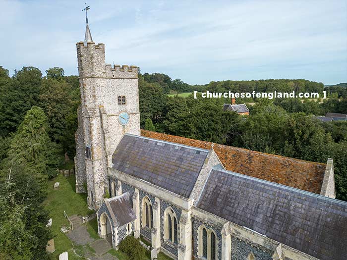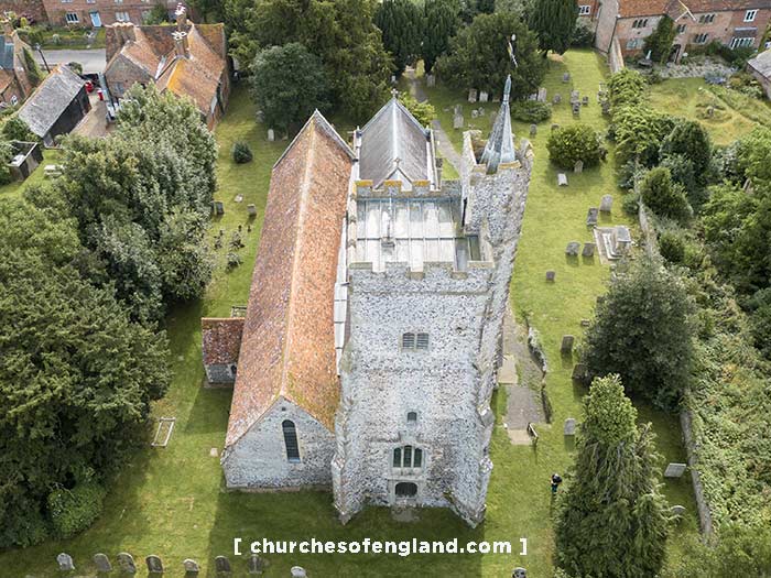 Aerial views and the history of Holy Cross Church in Goodnestone, Kent.